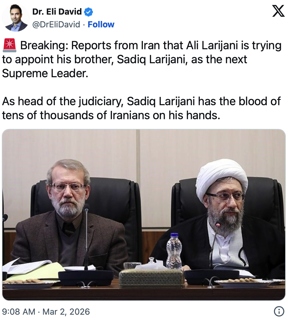 Interestingly, there are rumors that Larijani is attempting to install his own brother as the new supreme leader…