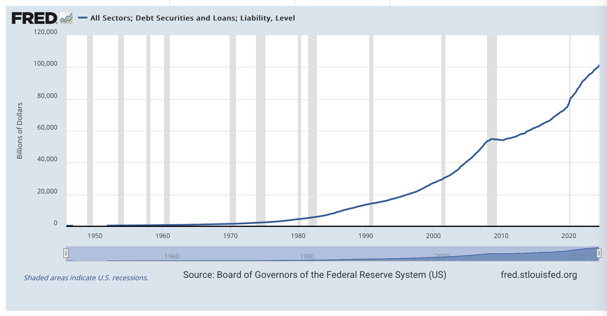 In the mid-90s, the total amount of debt in the system was about 20 trillion dollars, but now we have reached the 101 trillion dollar mark…