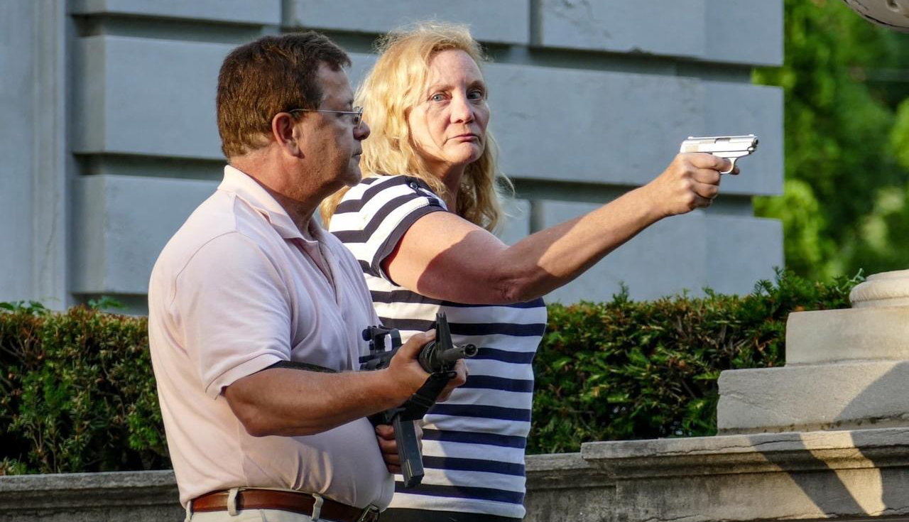 St. Louis, like many cities across the country, has seen demonstrations in the weeks since George Floyd’s death in Minneapolis, and the McCloskeys’ home was initially incidental to the demonstration on June 28. Several hundred people were marching to the home of Democratic Mayor Lyda Krewson, a few blocks from the McCloskeys’ home. Krewson had angered activists by reading on Facebook Live the names and addresses of some who had called for defunding police.